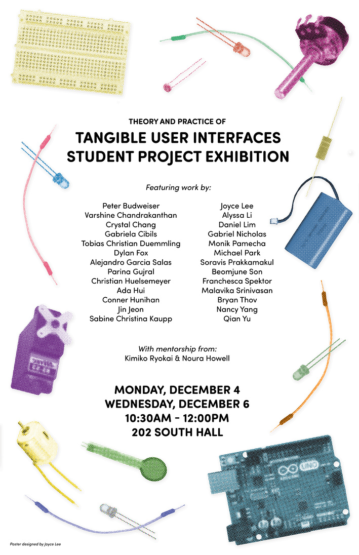 Tangible User Interfaces (INFO C262) is pleased to announce our Student Project Exhibition showcasing a variety of interactive project demos. Drop by anytime to experience these creative and outstanding projects!