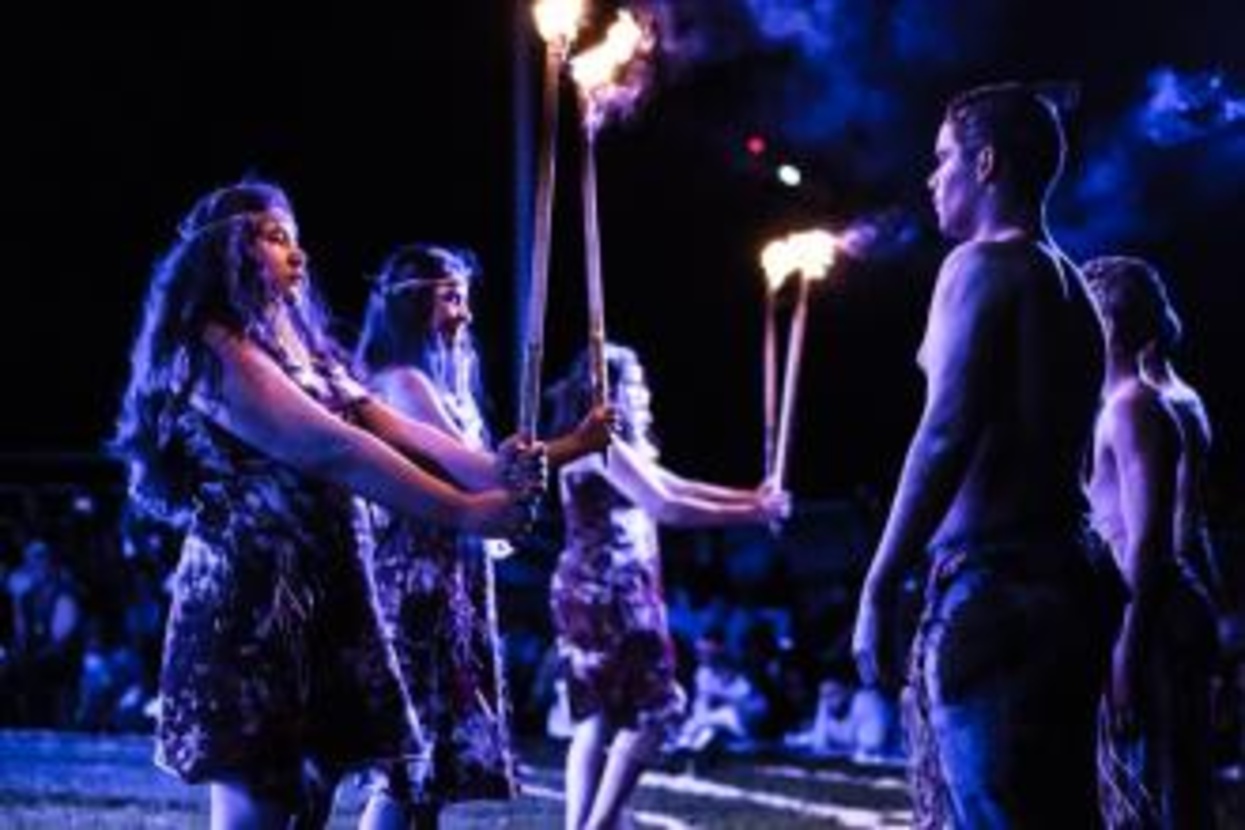 In summer 2019 Miriki Performing Arts from Australia and the Northern Pomo Dancers from California came together on the UC Berkeley campus on the Memorial Glade to build a bridge across the Pacific Ocean and raise awareness about two of the world's oldest living cultures. The event was co-hosted by the Department of Theater, Dance and Performance Studies at Berkeley, the Australian Government’s Regional Arts Fund through Regional Arts Australia, the Australia Council for the Arts, and the Embassy of Australia in Washington, D.C. A group of some 40 dancers ages 7 to 70 performed a series of stories that explored the relationship of fire between the Yidinji Nation from Cairns, Australia, and the Northern Pomo Tribe from the Redwood Valley Rancheria, in California. The performance was called Bayal Kaymanen, which translates to “Dancing Smoke” (“bayal” means “fire and smoke” in the Yidinji language, and “kaymanen” means “dance” in the Pomo language).