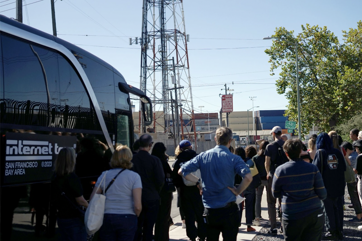 “Internet Tour” is an initiative by artist Mario Santamaría, returning to the Bay Area for a second consecutive year, again in collaboration with Alex Saum-Pascual, and together with the Berkeley Center for New Media and the Arts Research Center. Together, we’ll embark on a collective exploration of the world’s preeminent technology hub, the San Francisco Bay Area, as we unearth its Internet infrastructure. Traveling by bus and on foot across Berkeley, Emeryville, and Oakland, this guided tour will also feature poetic and artistic experiences. We’ll visit the places through which our voices, images, cryptocurrencies, and future intelligences circulate as cursed matter that flows from the same wound. Where to go from there?