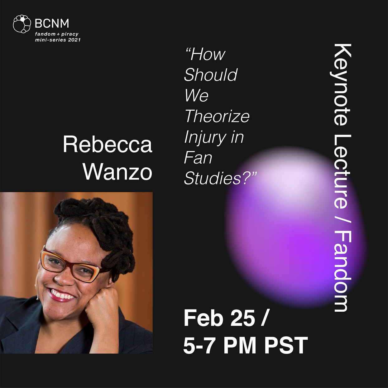 The series will be recorded and available on BCNM's YouTube channel. Note: We will only be sharing the recording of the Q&A portion of Rebecca Wanzo's Keynote Lecture.