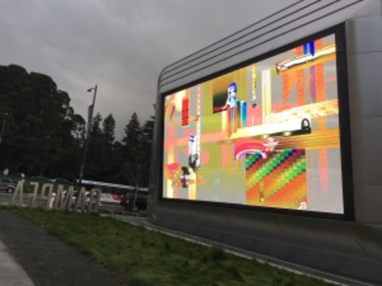 On a rainy weekend, the BAMPFA screen lit up Berkeley with art as animated GIF (Graphic Interchange File) images from the now defunct Geocities collided, faded, and reformed, in a testament to the ephemeral and ever-developing world of internet culture. GIF Collider is a Javascript program created by artists Greg Niemeyer, Olya Dubatova, and Brewster Kahle, that explores a trove of visual culture preserved by the Internet Archive, in celebration of the Archive's 20th anniversary. The endlessly looping program features 4.5 million GIFs created between 1996 to 2007 by users of Geocities. Considered one of the precursors of social media, Geocities is now defunct but remains a major milestone in the history of the Internet. It was the first to give millions of users the ability to create their own personal websites, a form of digital folk art. GIF Collider shows how radically the aesthetics and the very way of producing and organizing information online has evolved in just twenty years, and reminds us that Internet culture is still in the process of dynamic formation. Refreshments and music composed especially for the program by Paz Lenchantin and Starpause accompanied the viewing on October 28th.