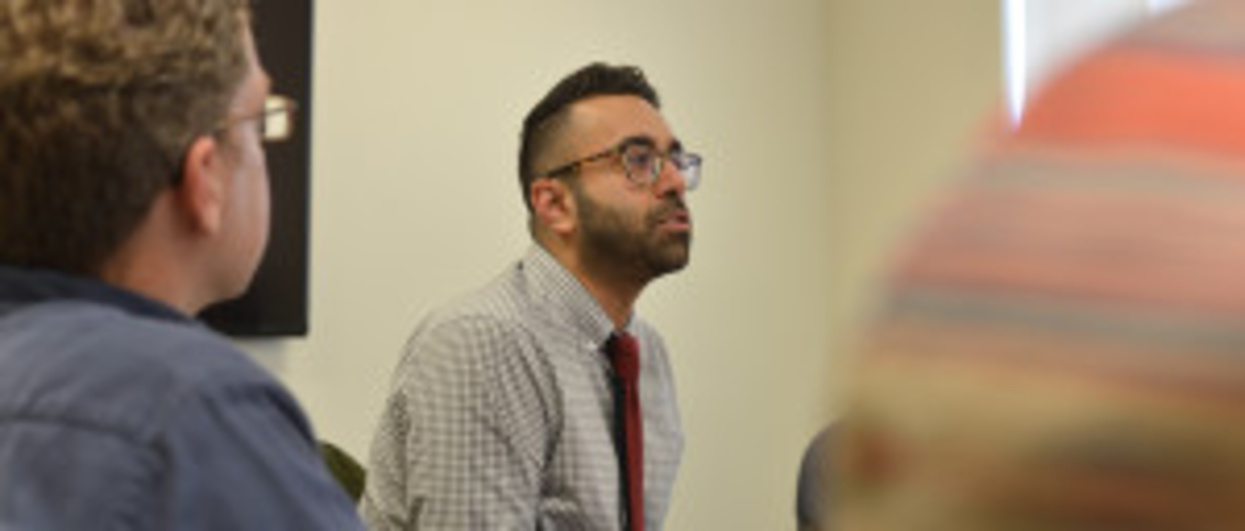 Ronak Kapadia, an Assistant Professor at the University of Illinois, Chicago, gave a talk on "Insurgent Aesthetics" on Friday March 18th. Kapadia discussed how the United States interacts with Muslim populations around the world, exploring how insurgent aesthetics utilize the torture archive as raw material for creative intervention, and in so doing, offer a more imaginative account of security and the sensorial life of empire. Kapadia noted how the United States has created an incredible archive of data, ostensibly in the name of transparency. However the vast amounts of data collected has a numbing effect on the audience. The data, in essence, becomes "cold" as the numbers and reports are ignored. Kapadia focused on how Arab, Muslim, and South Asian artists interact with the archives to restore the human element and transform "cold data" into "warm data." Warm data suggests that the information is full of the sensory metadata that makes it more accessible to an audience. These processes by Rajkamal Kahlin and Mariam Ghani explore the culture of acceptance that has developed around these issues, where Muslim men are absorbed into the system of US military torture and interrogation, and stripped of identity.
