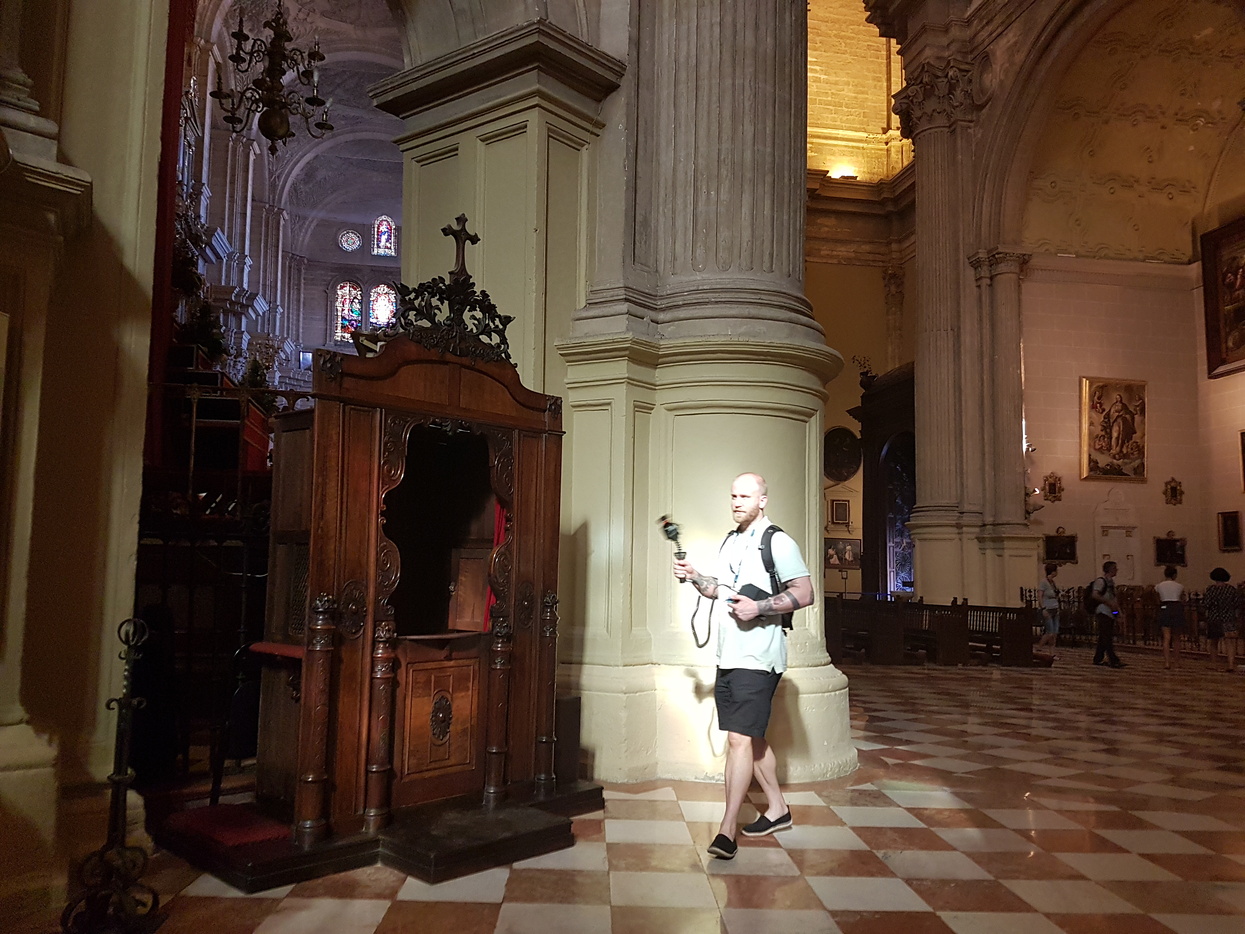 Pictured above: Justin Underhill scans the interior of the Cathedral of Malaga with laser mapping technology