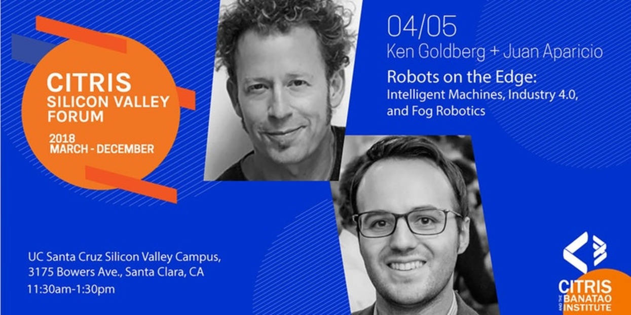 For the second panel of the Spring 2018 series, BCNM faculty Ken Goldberg has been invited to speak at "Robots on the Edge: Intelligent Machines, Industry 4.0 and Fog Robotics" alongside Berkeley researcher Juan Aparicio.