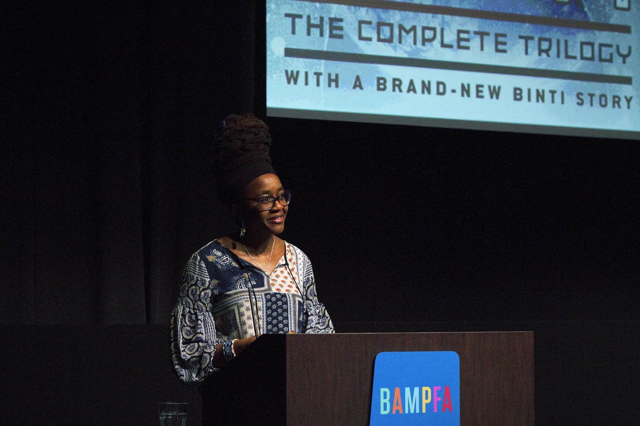 While Okorafor’s work offers hopeful and imaginative alternate realities, they are also worlds in which individuals grapple with the history of injustice. When asked about what we could do today to make the optimism of her science fiction stories part of our possible futures, Okorafor emphasized the importance of listening. “I encourage open understanding and dialogue. Listening is underrated. Listen and consider first before entering a dialogue. Calming the need to talk back immediately is a useful tool right now.”
