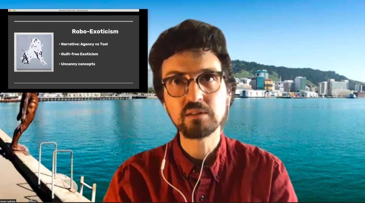 As part of BCNM’s recent transition to Zoom webinars, artist and researcher Tom White was gracious enough to take our last ATC lecture online. We couldn’t think of a better person to wrap up our series on robo-exoticism as White tuned in live from Wellington, New Zealand to discuss “Neutral Abstractions.”
