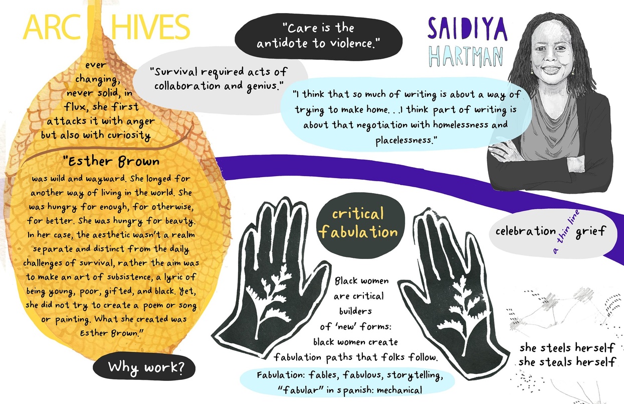 "What we need now is not more freedoms, but more fugitives. We need more fugitives to find the loophole in our language of liberation. We need fugitives now to keep abolishing legacies of slavery, colonialism and genocide that persist in the present day. What the world needs now is a pursuit of freedom rooted not in the fear of someone taking what's ours but in a radical kind of love that refuses to settle formeanings of 'justice', 'safety' and 'independence' that recreate the shackles, borders, colorlines, and other punitive forms of policing and surveillance we just escaped to claim our freedom... [Freedom] as a practice of mutual respect, reconciliation and repair through which our communities might heal from the injury American freedoms have exacted upon our bodies. No, not just for one. What we need now are sweet ways for everyone to remain fugitive within the domain of state sanctioned violence and neglect that would otherwise render our lives immaterial."