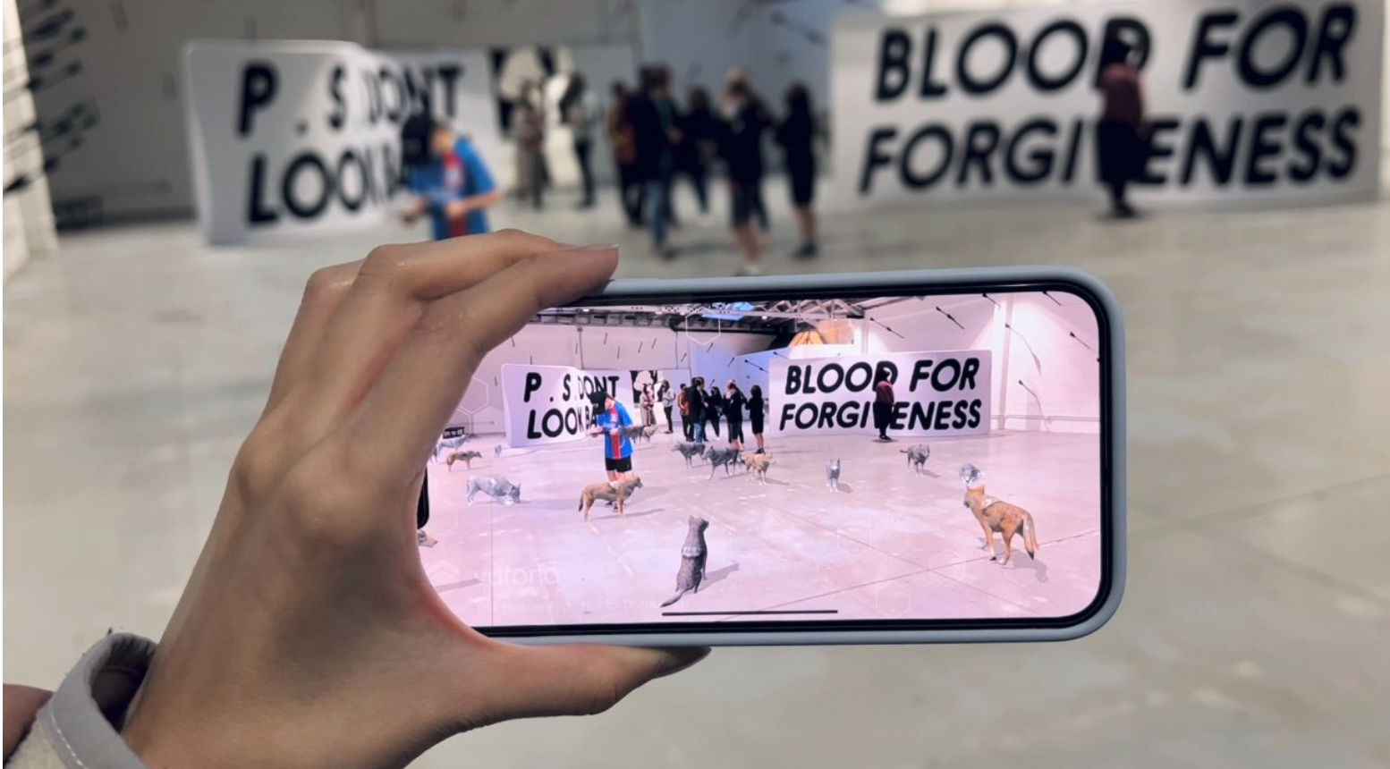 By situating the audience-participant in both a virtual environment and a physical space, Dog Pack blurs the boundaries between the real and the imagined, the historical and the present. The work grounds itself in the conceptual art of the 1960s, a time when questions about the nature and necessity of the physical art object were primary. The project nods toward modern-day artmaking, where semiological questions about the nature of art have new meaning as technology has advanced and AR objects are both “here” and “not here” simultaneously.