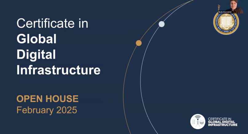 25 Feb, 2025 Video Now Online! Global Digital Infrastructure Certificate Open House Missed the open house for the first-ever Certificate in Global Digital Infrastructure? A recording has now been uploaded to YouTube! Read more